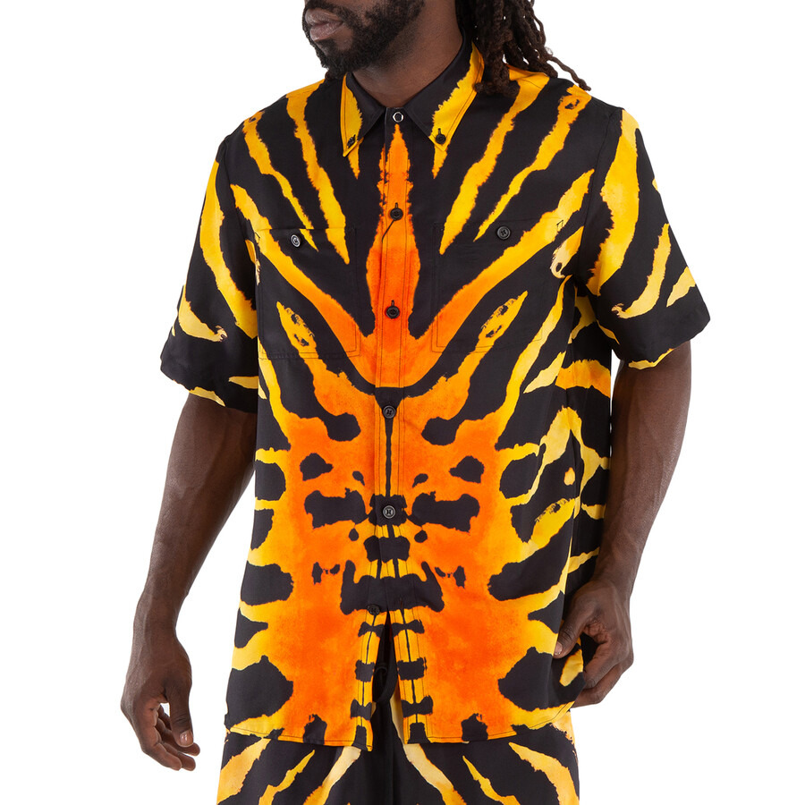 Burberry Tiger Print Short Sleeve Silk Shirt