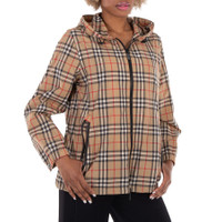 Burberry Ladies Outerwear. Fashion category: Coats & Jackets. SKU: 8025678. Color: Archive Beige Ip Chk. Burberry Vintage Check Drawstring Hooded Jacket. This jacket features a vintage check pattern, a drawstring hood, a front two-way zip fastening, long sleeves with press-stud fastening cuffs, a straight hem, and two side zip-fastening pockets. Lining: Polyester 100%, Outer: Recycled Polyester 100%. Made in Italy. GENERAL Brand Type: Designer Color: Archive Beige Ip Chk INFORMATION Brand: Burberry Gender: Womens Model: 8025678 DETAILS Category: Outerwear Apparel Type: Coats & Jackets Material: Polyester ADDITIONAL INFO Jomashop Sku: -8025678N Department: Clothing