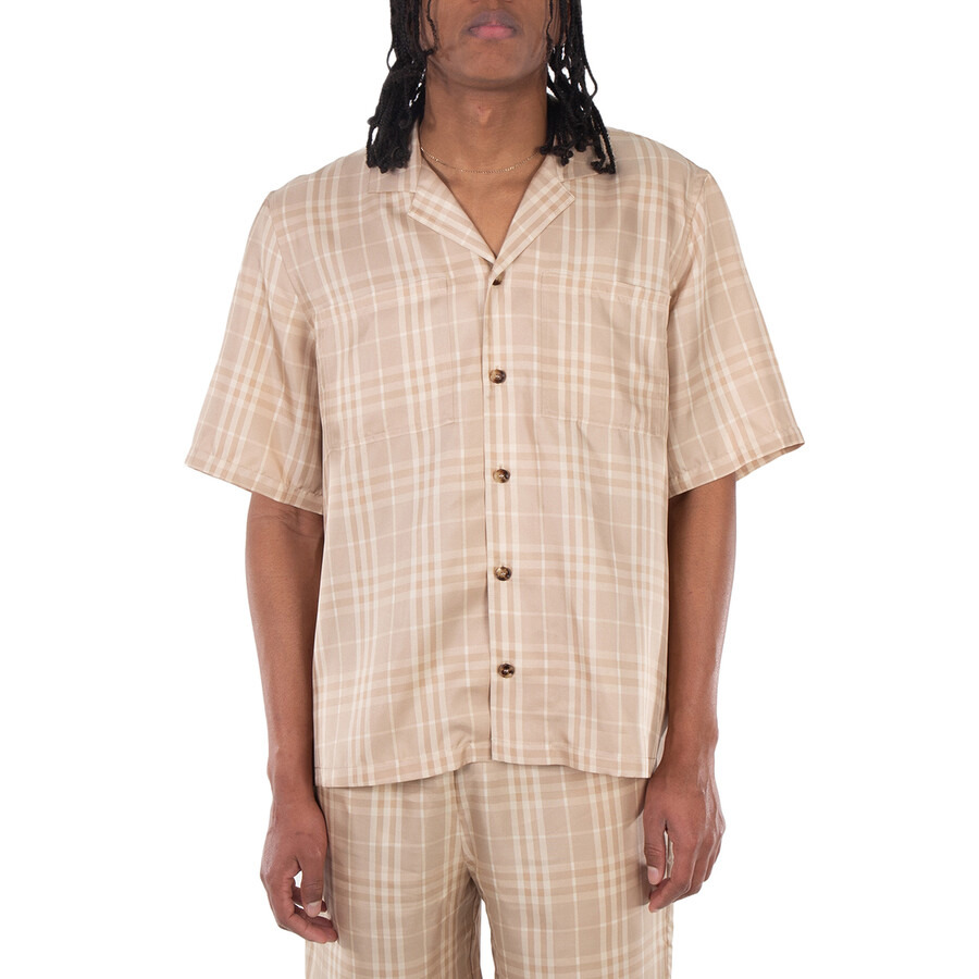 Burberry Men's Tops. Fashion category: Shirts & Blouses. SKU: 8068583. Color: Soft Fawn Ip Chck. Burberry Vintage Check Pattern Shirt. This silk shirt features a vintage check pattern, a spread collar, front button fastening, short sleeves and two chest patch pockets. 100% Silk. Made in Italy. GENERAL Color: Soft Fawn Ip Chck INFORMATION Brand: Burberry Gender: Mens Model: 8068583 DETAILS Category: Tops Apparel Type: Shirts & Blouses Material: Silk ADDITIONAL INFO Jomashop Sku: -8068583N Department: Clothing