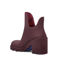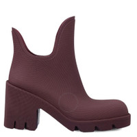 Burberry 70mm round-toe slip-on Boots. SKU: 8075457. Color: Aubergine. Burberry Water-Resistant Pebbled Rubber Boots. This boot is water-resistant with a pebbled texture, high heel and features a logo at the sole. It is ankle-length with an oversized tongue, a round toe, and a ridged rubber sole. Made in Italy. Please visit the brand website for sizing information. INFORMATION Brand: Burberry Model: 8075457 Gender: Womens DETAILS Category: Boots Shoe Style: Ankle boots Shoe Style: Ankle boots Color: Aubergine Shoe Vamp Style: Slip-on Sole Material: Rubber ADDITIONAL INFO Jomashop Sku: -8075457N Department: Shoes