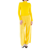 Burberry Ladies Bottoms. Fashion category: Pants & Leggings. SKU: 8066278. Color: Dandelion Yellow. Burberry Wide-Leg Silk Satin Trousers. These pants feature a wide-leg design with contrasting lace trims at the cuffs, an elasticated waistband, side slip pockets, and a regular fit. Outer: 65% cupro, 35% viscose Trim: 50% polyamide, 50% viscose. Made in Italy. GENERAL Brand Type: Designer Color: Dandelion Yellow INFORMATION Brand: Burberry Gender: Womens Model: 8066278 DETAILS Category: Bottoms Apparel Type: Pants & Leggings Material: Cupro, Polyamide, Viscose ADDITIONAL INFO Jomashop Sku: -8066278N Department: Clothing