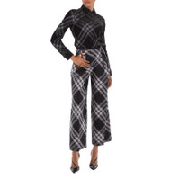 Burberry Ladies Bottoms. Fashion category: Pants & Leggings. SKU: 8083697. Color: Monochrome Ip Check. Burberry Wide-Leg Tartan Wool Boyfriend Trousers. Burberry wide-leg trousers, featuring an oversized black-and-white tartan pattern. Crafted from premium wool, this high-waisted design combines dramatic volume with tailored pleats for a striking yet sophisticated silhouette. 100% Wool. Made in Italy. GENERAL Brand Type: Designer Color: Monochrome Ip Check INFORMATION Brand: Burberry Gender: Womens Model: 8083697 DETAILS Category: Bottoms Apparel Type: Pants & Leggings Material: Wool ADDITIONAL INFO Jomashop Sku: -8083697N Department: Clothing