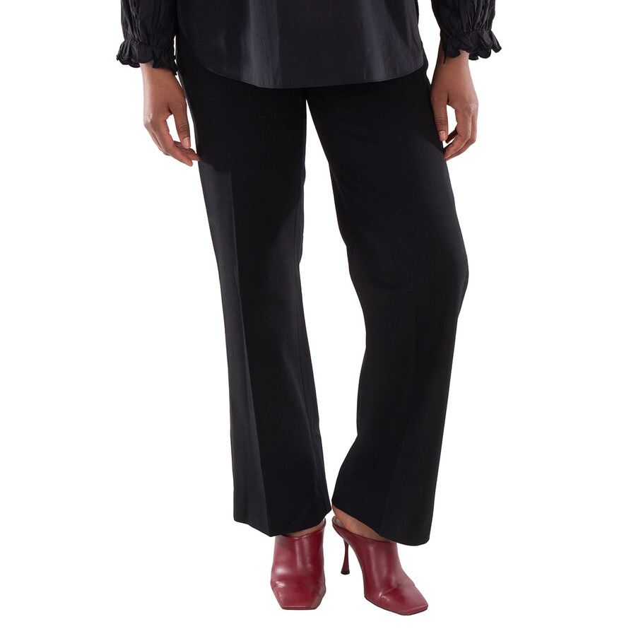 Burberry Ladies Bottoms. Fashion category: Pants & Leggings. SKU: 8077457. Color: Black. Burberry Wool Blend Tailored Trousers. A pair of high-waisted wool-blend trousers featuring a relaxed fit, an elasticated waistband with belt loops, and an allover warped houndstooth jacquard design for a modern touch. Wool 56%, Polyester 29%, Polyamide 14%, Elastane 1% Made in Italy. GENERAL Brand Type: Designer Color: Black INFORMATION Brand: Burberry Gender: Womens Model: 8077457 DETAILS Category: Bottoms Apparel Type: Pants & Leggings Material: Polyamide, Polyester, Wool ADDITIONAL INFO Jomashop Sku: -8077457N Department: Clothing