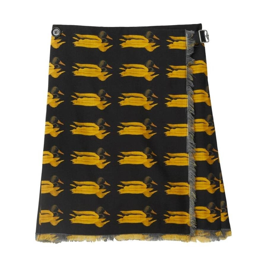 Burberry Ladies Bottoms. Fashion category: Skirts. SKU: 8077644. Material: Wool. Color: Yellow. Burberry Wool Frayed-Edge Animal-Printed Mini Skirt. Animal print skirt with a frayed edge, side buckle fastening, straight hem, and thigh-length design.100% Wool, Trims: Calf Leather 100%. Made in Italy. GENERAL Brand Type: Designer Color: Yellow INFORMATION Brand: Burberry Gender: Womens Model: 8077644 DETAILS Category: Bottoms Apparel Type: Skirts ADDITIONAL INFO Jomashop Sku: -8077644N Department: Clothing