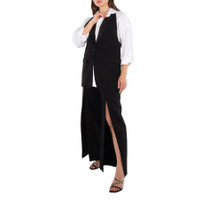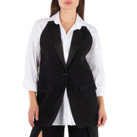 Burberry Ladies Outerwear. Fashion category: Coats & Jackets. SKU: 8071376. Material: Rayon;Wool. Color: Black. Burberry Wool Tailored Blazer Vestwith Satin Peak Lapels. The blazer vest is made of black wool and features narrow notch lapels, a front button fastening, sleeveless design, and two front flap pockets. 100% Wool.100% Cupro. Made in Italy GENERAL Color: Black INFORMATION Brand: Burberry Gender: Womens Model: 8071376 DETAILS Category: Outerwear Apparel Type: Coats & Jackets ADDITIONAL INFO Jomashop Sku: -8071376N Department: Clothing
