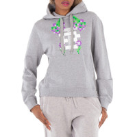 Burberry Ladies Tops. Fashion category: Hoodies & Sweatshirts. SKU: 8064877. Color: Pale Grey Melange. Burberry x Minecraft Poulter Monogram Motif Print Cotton Hoodie. This organic loop-back cotton hoodie blends comfort with contemporary design. Featuring a drawcord hood, pouch pocket, and ribbed trims, it offers a relaxed yet refined regular fit. Long sleeves enhance its classic silhouette, while a striking pixelated Thomas Burberry Monogram, Creeper, and floral graphics add a modern, artistic touch. 100% Cotton. GENERAL Brand Type: Designer Color: Pale Grey Melange INFORMATION Brand: Burberry Gender: Womens Model: 8064877 DETAILS Category: Tops Apparel Type: Hoodies & Sweatshirts Material: Cotton ADDITIONAL INFO Jomashop Sku: -8064877N Department: Clothing