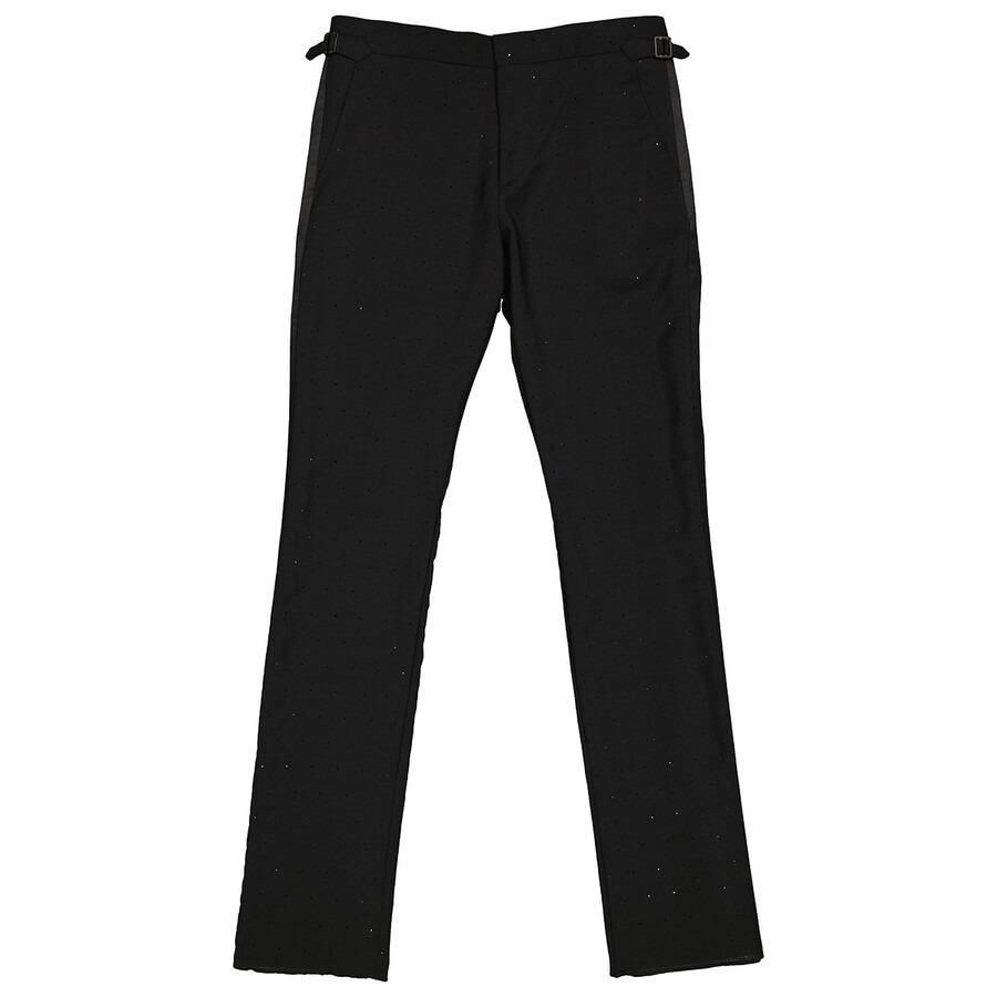 About Open Box Specials: Jomashop offers deep discounts on open box items (used item with some signs of wear) with our money back guarantee. Jomashop.com will provide a full refund minus the cost of shipping for the item if you are not satisfied with your open box purchase. You have 10 days from when your order is shipped out of our warehouse to request a RMA (Return Merchandise Authorization). Jomashop's watch warranty will still apply from your purchase date. Some conditions may apply. Read our full return policy here.Open Box / Irregular Issue: Small cut on right bottom of pants. Burberry Men's Bottoms. Fashion category: Pants & Leggings. SKU: 8025628. Color: Black. Burberry Men's Black Embellished Mohair Wool Classic Fit Tailored Trousers. A Burberry trouser crafted in Italian-woven mohair wool, featuring a classic-fit, side waist adjuster tabs, zip fly with hook-and-bar closure, side slip pockets, back button welt pockets and crystal embellishments. 60% mohair, 40% wool. Made in Italy. GENERAL Size Info: 35.8 Brand Type: Designer Clothing Size: Men's Clothing Size: 35.8 INFORMATION Brand: Burberry Gender: Mens Model: 8025628 DETAILS Category: Bottoms ADDITIONAL INFO Jomashop Sku: OB-Z-ZCCBN Department: Clothing