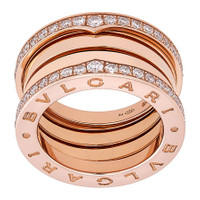 Bvlgari Rings. B.Zero1 series. SKU: 348025. Color: Rose Gold. Metal Type: Rose Gold. Metal Stamp: 18k. Gem stone type: Diamonds. Stone weight: 1.27ct. Bvlgari B.Zero1 18k Rose Gold 4-Band Diamond Ring. A Bvlgari 4-band ring from the B.Zero1 collection, crafted in 18K Pink Gold. It features a "Bvlgari Bvlgari" engraving and pave diamonds. GENERAL Box: No Papers: No Brand Type: Designer Color: Rose Gold Collection Name: B.Zero1 INFORMATION Brand: Bvlgari Series: B.Zero1 Gender: Womens Model: 348025 DETAILS Size Info: 51 Material : Rose Gold Metal Stamp: 18K Stone Type: Diamonds Stone Weight: 1.27 ADDITIONAL INFO UPC Code: 8034024480632 Jomashop Sku: Z-Z2J4E Department: Jewelry Category: Rings
