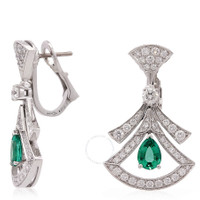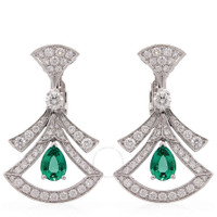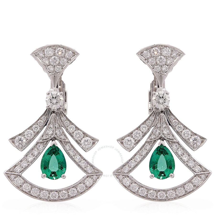 Bvlgari Ladies Earrings. SKU: 356956. Barcode: 8034024623831. Color: White Gold/Emerald Green. Metal Type: White Gold. Metal Stamp: 18k. Gem stone type: Diamond. Stone weight: 1.48ct. Stone shape: Round. Bvlgari Divas Dream 18K White Gold, Diamond, Emerald Drop Earrings. GENERAL Brand Type: Designer Stone Shape: Round Color: White Gold/Emerald Green INFORMATION Brand: Bvlgari Gender: Womens Model: 356956 DETAILS Earrings: Drop/Dangle Material : White Gold Metal Stamp: 18K Stone Type: Diamond Stone Weight: 1.48 Stone Cut: Round ADDITIONAL INFO UPC Code: 8034024623831 Jomashop Sku: Z-A666H Department: Jewelry Category: Earrings