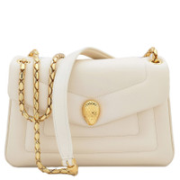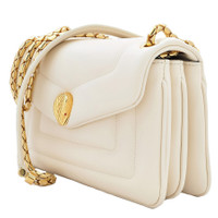 Bvlgari Ladies Shoulder Bag. SKU: 292123. Color: Ivory. Size: 8.9 x 5.9 x 2.8". Bvlgari Ivory Serpenti Reverse Leather Shoulder Bag. Made from quilted Metropolitan calf leather, this bag features a magnetic heritage snakehead closure inspired by a 1960s Bvlgari watch, along with a snake body-shaped chain and leather strap, three compartments, a zipped pocket, two internal patch pockets, and an additional patch pocket on the back. 100% Leather. Made in Italy. GENERAL Size Info: 8.9 x 5.9 x 2.8" Brand Type: Designer Color: Ivory INFORMATION Brand: Bvlgari Gender: Womens Model: 292123 DETAILS Material: Leather Closure: Flap DIMENSIONS Size: Small ADDITIONAL INFO UPC Code: 8052749243653 Jomashop Sku: Z-Y7ZFA Department: Bags Category: Shoulder Bag
