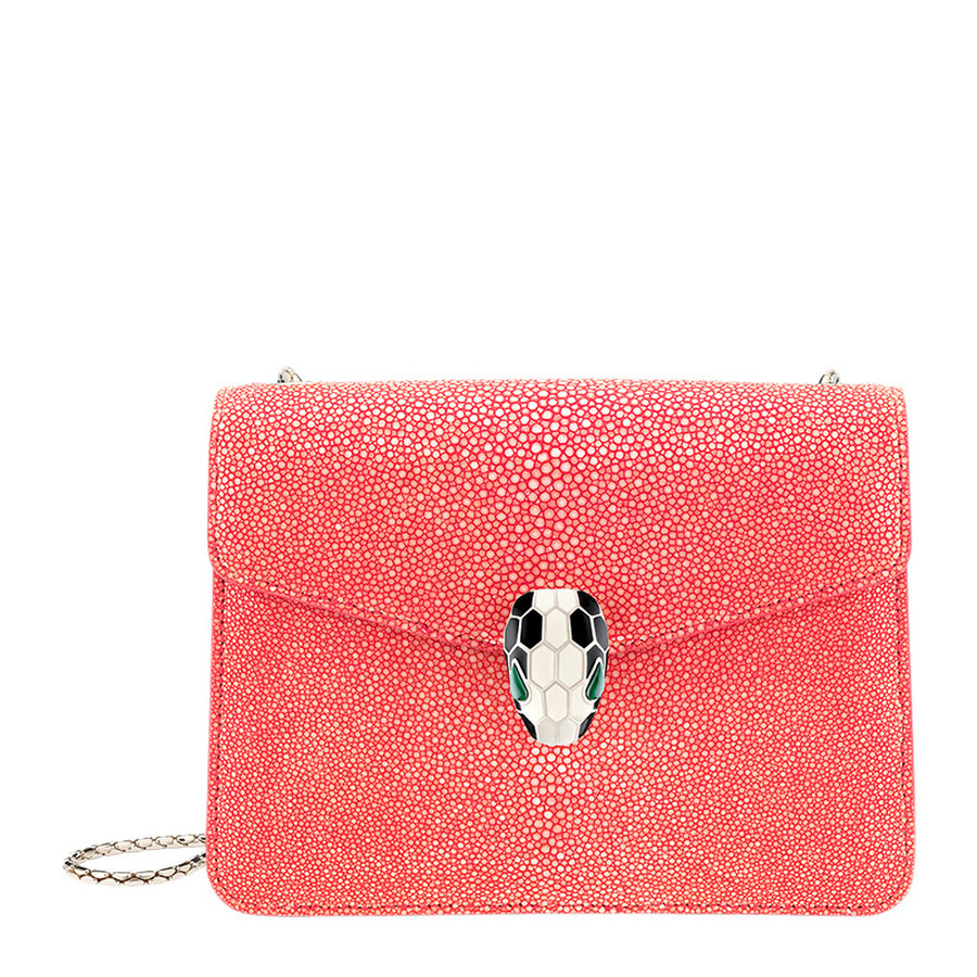Bvlgari Ladies Crossbody. Bulgari Fiorever series. SKU: 288059. Size: L: 7.9" x H: 5.5" x W: 1.8". The Bvlgari Serpenti Forever Crossbody Bag in galuchat leather is a luxurious accessory known for its distinctive design and craftsmanship. This bag features the iconic snakehead closure and is complemented by a snake body-shaped chain strap, allowing for versatile crossbody wear. 100% Leather. Made in Italy. GENERAL Size Info: L: 7.9" x H: 5.5" x W: 1.8" Brand Type: Designer Collection Name: Bulgari Fiorever INFORMATION Brand: Bvlgari Series: Bulgari Fiorever Gender: Womens Model: 288059 DETAILS Material: Leather ADDITIONAL INFO UPC Code: 8052749178184 Jomashop Sku: BVL288059 Department: Bags Category: Crossbody