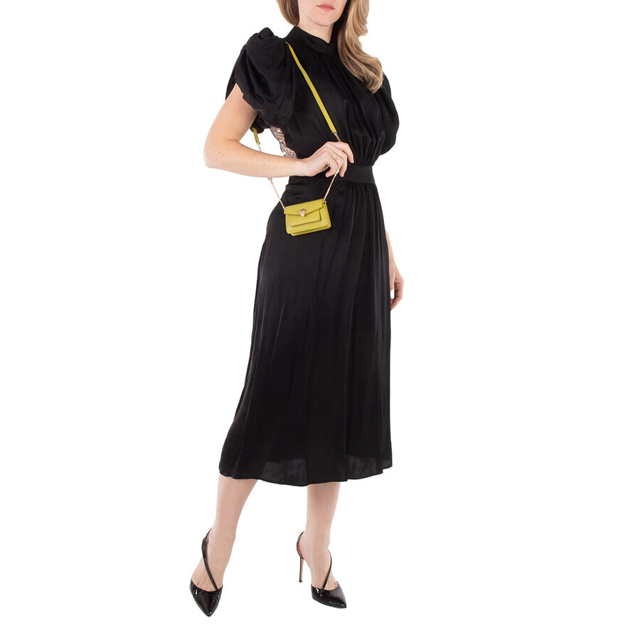 Bvlgari Ladies Shoulder Bag. Serpenti Forever series. SKU: 293719. Size: 3.9 x 2.8 x 1.4". Bvlgari Serpenti Forever Leather Micro Bag. The Serpenti Forever mini bag, crafted from calfskin with lambskin lining, combines glamour and practicality with its magnetic snakehead closure, chain and leather strap, and functional design featuring a flap closure, credit card pocket, and internal flat pocket, making it the perfect accessory for essentials. Material: 100% Leather. Made in Italy. GENERAL Size Info: 3.9 x 2.8 x 1.4" Collection Name: Serpenti Forever INFORMATION Brand: Bvlgari Series: Serpenti Forever Gender: Womens Model: 293719 DETAILS Material: Leather Closure: Magnetic Snap DIMENSIONS Size: Mini ADDITIONAL INFO Jomashop Sku: Z-PRQE3 Department: Bags Category: Shoulder Bag