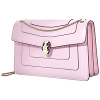 Bvlgari Ladies Shoulder Bag. Serpenti Forever series. SKU: 288716. Bvlgari Serpenti Forever shoulder bag crafted in rosa di francia calf leather with light gold plated brass snakehead closure with black and white enamel and green malachite eyes. Dimensions: 28 x 19 x 7.5 cm - 11 x 7.5 x 2.9". GENERAL Brand Type: Designer Color: Pink Collection Name: Serpenti Forever INFORMATION Brand: Bvlgari Series: Serpenti Forever Gender: Womens Model: 288716 ADDITIONAL INFO UPC Code: 8052749189340 Jomashop Sku: BVL288716 Department: Bags Category: Shoulder Bag