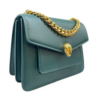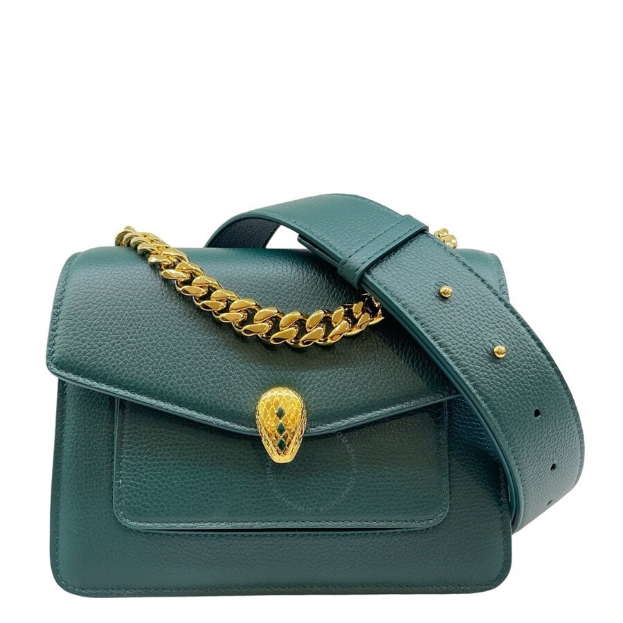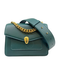 Bvlgari Crossbody. Maxi Chain series. SKU: 292702. Barcode: 8052749252907. Color: Forest Emerald Green. Size: 19.5 x 15 x 8.5 cm - 7.7 x 5.9 x 3.4 inches. Bvlgari Serpenti Forever Maxi Chain Crossbody Bag. The Serpenti Forever Maxi Chain small crossbody bag is crafted from grainy calf leather and adorned with the iconic snakehead magnetic closure, inspired by Bvlgari’s rich jewelry heritage and embellished with gemstones. A statement chain, reminiscent of a necklace, drapes elegantly over the flap and doubles as a handle. Featuring a leather shoulder strap and a single main compartment, the bag includes a front pocket, a back patch pocket, and a mirror pocket complete with a customizable mirror. Finished with the Bvlgari metal logo on the back, this piece blends bold elegance with thoughtful functionality. Material: Calf leather. Made in Italy. GENERAL Size Info: 19.5 x 15 x 8.5 cm - 7.7 x 5.9 x 3.4 inches Brand Type: Designer Color: Forest Emerald Green Collection Name: Maxi Chain INFORMATION Brand: Bvlgari Series: Maxi Chain Gender: Womens Model: 292702 DETAILS Material: Calfskin Closure: Flap ADDITIONAL INFO UPC Code: 8052749252907 Jomashop Sku: BVL292702 Department: Bags Category: Crossbody