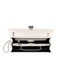Bvlgari Shoulder Bag. Serpenti Fiorever series. SKU: 288118. Size: 11 x 7.5 x 2.9 inches. The BVLGARI Serpenti Forever shoulder bag in white calf leather showcases the elegant "Woven Chain" motif and the iconic snakehead closure with enamel detailing. This flap-cover design features a snake-chain body strap, interior pockets including a mirror pocket, and a secure clasp fastening. 100% Leather. Made in Italy. GENERAL Size Info: 11 x 7.5 x 2.9 inches Brand Type: Designer Color: White Collection Name: Serpenti Fiorever INFORMATION Brand: Bvlgari Series: Serpenti Fiorever Gender: Womens Model: 288118 DETAILS Material: Leather ADDITIONAL INFO UPC Code: 8052749179716 Jomashop Sku: BVL288118 Department: Bags Category: Shoulder Bag