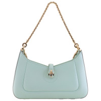 Bvlgari Ladies Shoulder Bag. Serpenti Bai series. SKU: 293631. Color: Light Blue. Size: 10.8 x 7.1 x 1.8". Bvlgari Small Serpenti Baia Leather Shoulder Bag. Crafted from Metropolitan calf leather, features a snakehead magnetic closure inspired by '60s Serpenti jewels, detachable snake-shaped chains for versatile wear, a single compartment with a zippered top, an internal pocket, and light gold-plated brass hardware. Material: Calf leather. Made in Italy. GENERAL Size Info: 10.8 x 7.1 x 1.8" Brand Type: Designer Color: Light Blue Collection Name: Serpenti Bai INFORMATION Brand: Bvlgari Series: Serpenti Bai Gender: Womens Model: 293631 DETAILS Material: Leather Closure: Zip-Up DIMENSIONS Size: Small ADDITIONAL INFO Jomashop Sku: Z-LLQBE Department: Bags Category: Shoulder Bag