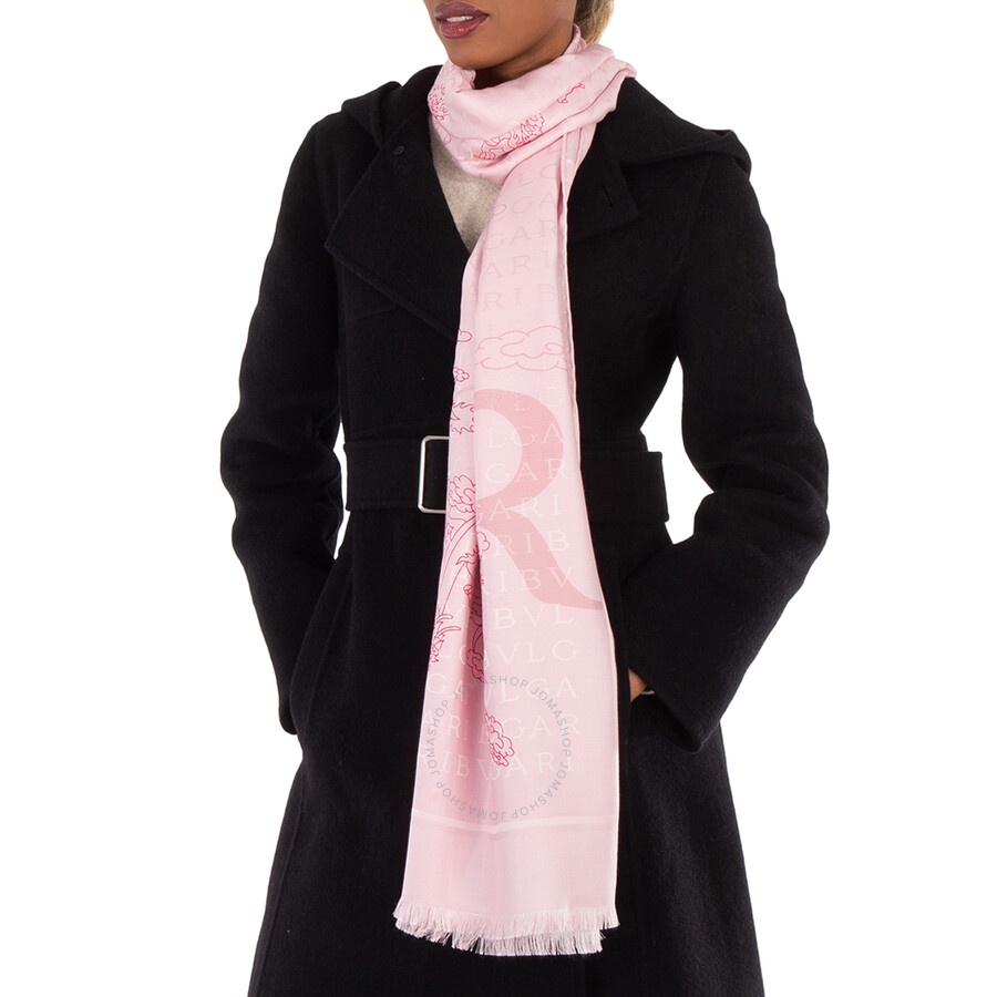 Bvlgari Scarves. Fashion category: Scarves. SKU: 245862. Color: Pink. Size: 27.6 x 70.8". Bvlgari Year Of The Drago Logomania Stole. . The Lettere Maxi stole, crafted in fine pink silk wool, celebrates the Year of the Dragon with a special edition design that showcases creativity and exceptional craftsmanship. 60% silk and 40% wool. Handmade in Italy. GENERAL Brand Type: Designer Size Info: 27.6 x 70.8" Material: Silk, Wool Gender: Womens Color: Pink Apparel Type: Scarves INFORMATION Brand: Bvlgari Model: 245862 ADDITIONAL INFO Jomashop Sku: Z-RC2K4 Department: Fashion Accessories Category: Scarves