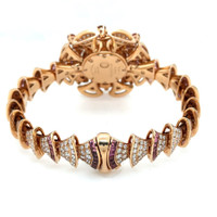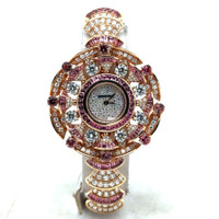 Rose gold-tone 18kt rose gold case and bracelet. Fixed rose gold-tone sapphire bezel. Diamond dial with rose gold-tone hands and diamond hour markers. Dial Type: Analog. Quartz movement. Scratch resistant sapphire crystal. Pull / push crown. Solid case back. Round case shape, case size: 39 mm, case thickness: 6 mm. Band width: 13 mm. Jewelry clasp. Water resistant at 30 meters / 100 feet. Functions: hour, minute. Diva's Dream Series. Luxury watch style. Watch label: Swiss Made. Pre-owned Bvlgari DivaS Dream Quartz Diamond Ladies Watch 102562. GENERAL Collection Name: Diva'S Dream INFORMATION Brand: Bvlgari Series: Diva'S Dream Model: 102562 Gender: Womens Watch Label: Swiss Made Movement: Quartz CONDITION INFORMATION Box: Yes Preowned Item Condition: Excellent Papers: Yes CASE Case Size: 39 mm Case Thickness: 6 mm Case Material: 18kt Rose Gold Case Shape: Round Case Back: Solid DIAL Type: Analog Dial Color: Diamond Crystal: Scratch Resistant Sapphire Hands: Rose Gold-tone Dial Markers: Diamond Bezel: Fixed Bezel Color: Rose Gold-tone Bezel Material: Sapphire Crown: Pull / Push BAND Band Type: Bracelet Band Material: 18kt Rose Gold Band Color: Rose Gold-tone Band Width: 13 mm Clasp: Jewelry FEATURES Water Resistance: 30 meters / 100 feet Functions: Hour, Minute Watch Features: Diamond, Gold, Analog ADDITIONAL INFO Watch Style: Luxury Warranty: 1 Year Jomashop Warranty Jomashop Sku: PRE-P-BVL78924 Department: Watches