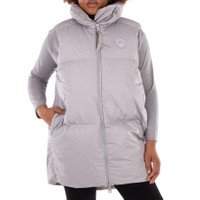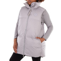 Canada Goose Ladies Outerwear. Fashion category: Vests. SKU: 4824W-439. Color: Moonstone Grey. Canada Goose Garnet Long Padded Vest. This vest features 750 Fill Power duck down insulation, is water repellent and wind resistant, has a 2-way zip closure, funnel neck and includes applique branding. 100% Pima Cotton. GENERAL Color: Grey INFORMATION Brand: Canada Goose Gender: Womens Model: 4824W-439 DETAILS Category: Outerwear Apparel Type: Vests Material: Cotton ADDITIONAL INFO Jomashop Sku: -4824W439 Department: Clothing