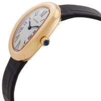 18kt yellow gold case with a black alligator leather strap. Fixed 18kt yellow gold bezel. Silvered dial with blue hands and Roman numeral hour markers. Dial Type: Analog. Quartz movement. Scratch resistant sapphire crystal. Solid case back. Case size: 31 mm x 23 mm, case thickness: 7 mm. Water resistant at 30 meters / 100 feet. Functions: hour, minute. Baignoire De Cartier Series. Luxury watch style. Watch label: Swiss Made. Cartier Baignoire de Cartier Quartz Ladies Watch WGBA0042. GENERAL Box Type: Original Box CASE Case Thickness: 7 mm Case Material: 18kt Yellow Gold Case Back: Solid BAND Band Material: Alligator Leather Band Type: Strap Band Color: Black DIAL Dial Color: Silvered Type: Analog Crystal: Scratch Resistant Sapphire Hands: Blue Dial Markers: Roman Numeral Bezel: Fixed Bezel Material: 18kt Yellow Gold INFORMATION Brand: Cartier Series: Baignoire De Cartier Collection Name: Baignoire de Cartier Gender: Womens Model: WGBA0042 Watch Label: Swiss Made Movement: Quartz FEATURES Water Resistance: 30 meters / 100 feet Functions: Hour, Minute Watch Features: Leather, Alligator Leather, Analog, Gold ADDITIONAL INFO Watch Style: Luxury Warranty: 2 Year Jomashop Warranty Jomashop Sku: CRTWGBA0042 Department: Watches