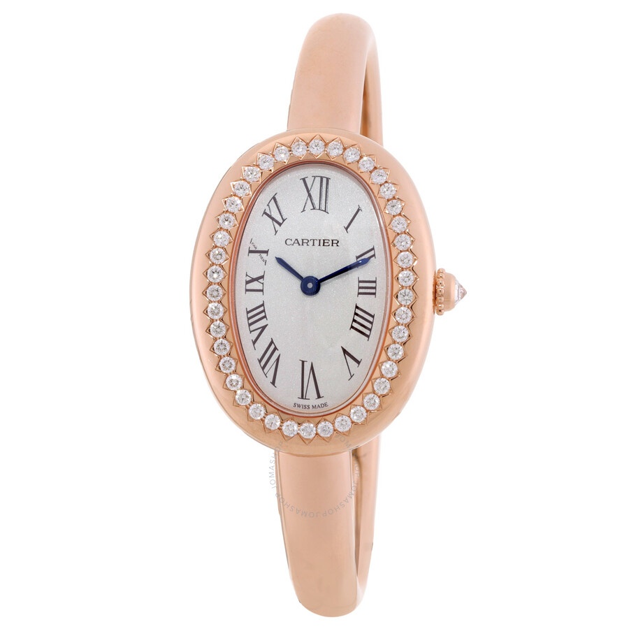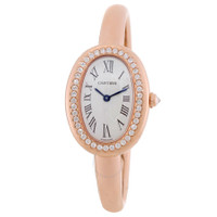 18k rose gold case and bracelet. Fixed 18k rose gold bezel. Silver-tone dial with blue hands and Roman numeral hour markers. Dial Type: Analog. Quartz movement. Scratch resistant sapphire crystal. Pull / push crown. Solid case back. Oval case shape, case size: 31.4 mm x 23.1 mm, case thickness: 6.9 mm. Jewelry clasp. Water resistant at 30 meters / 100 feet. Functions: hour, minute. Baignoire Series. Luxury watch style. Watch label: Swiss Made. Cartier Baignoire Quartz Silver Dial Ladies Watch WJBA0042. GENERAL Box Type: Original Box CASE Case Diameter: 23 mm Case Thickness: 6.9 mm Case Material: 18K Rose Gold Case Shape: Oval Case Back: Solid BAND Band Material: 18K Rose Gold Band Type: Bracelet Clasp: Jewelry DIAL Dial Color: Silver-tone Type: Analog Crystal: Scratch Resistant Sapphire Hands: Blue Dial Markers: Roman Numeral Bezel: Fixed Bezel Material: 18K Rose Gold Crown: Pull / Push INFORMATION Brand: Cartier Series: Baignoire Collection Name: Baignoire Gender: Womens Model: WJBA0042 Watch Label: Swiss Made Movement: Quartz FEATURES Water Resistance: 30 meters / 100 feet Functions: Hour, Minute Watch Features: Gold, Analog ADDITIONAL INFO Watch Style: Luxury Warranty: 2 Year Jomashop Warranty Jomashop Sku: CRTWJBA0042 Department: Watches