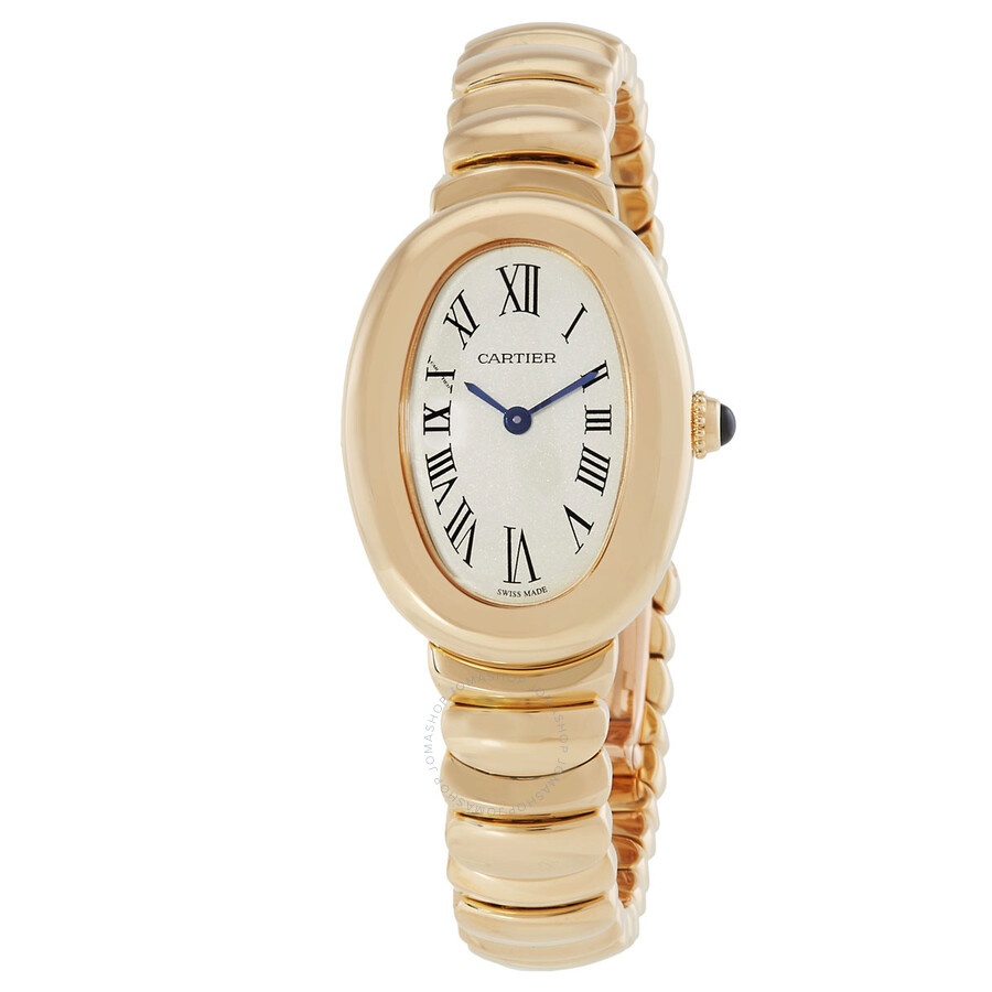 18kt yellow gold case and bracelet. Fixed 18kt yellow gold bezel. Silver dial with blued-steel sword-shaped hands. Roman numeral hour markers. Dial Type: Analog. Quartz movement. Scratch resistant sapphire crystal. Solid case back. Oval case shape, case size: 31.4 mm x 23.1 mm, case thickness: 6.95 mm. Water resistant at 30 meters / 100 feet. Functions: hour, minute. Baignoire Series. Luxury watch style. Watch label: Swiss Made. Cartier Baignoire Small 18kt Yellow Gold Quartz Silver Dial Ladies Watch WGBA0013. CASE Case Size: 31 Case Thickness: 6.95 mm Case Material: 18kt Yellow Gold Case Shape: Oval Case Back: Solid BAND Band Material: 18kt Yellow Gold Band Type: Bracelet DIAL Dial Color: Silver Type: Analog Crystal: Sapphire Hands: Blued-steel sword-shaped Dial Markers: Roman Numeral Bezel: Fixed Bezel Material: 18kt Yellow Gold INFORMATION Brand: Cartier Series: Baignoire Collection Name: Baignoire Gender: Womens Model: WGBA0013 Watch Label: Swiss Made Movement: Quartz FEATURES Water Resistance: 30 meters / 100 feet Functions: Hour, Minute Watch Features: Gold, Analog ADDITIONAL INFO Watch Style: Luxury Warranty: 2 Year Jomashop Warranty Jomashop Sku: CRTWGBA0013 Department: Watches