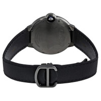 Black PVD stainless steel case with a black fabric strap. Fixed black PVD stainless steel bezel. Black dial with luminous silver-tone sword-shaped hands and Roman numeral hour markers. Minute markers around an inner ring. Dial Type: Analog. Luminescent hands and markers. Date display at the 3 o'clock position. Cartier Calibre 1847 MC Automatic movement, containing 23 Jewels, bitting at 28800 vph, and has a power reserve of approximately 42 hours. Scratch resistant sapphire crystal. Pull / push crown. Solid case back. Round case shape, case size: 42 mm, case thickness: 13 mm. Fold over clasp. Water resistant at 30 meters / 100 feet. Functions: date, hour, minute, second. Additional Info: crown set with a synthetic cabochon-shaped spinel. Ballon Bleu De Cartier Series. Luxury watch style. Watch label: Swiss Made. Cartier Ballon Bleu Automatic Men's Watch WSBB0015. CASE Case Size: 42 Case Thickness: 13 mm Case Material: Stainless Steel Case Shape: Round Case Back: Solid BAND Band Material: Fabric Band Type: Strap Band Color: Black Clasp: Fold Over DIAL Dial Color: Black Type: Analog Crystal: Scratch Resistant Sapphire Hands: Luminous Silver-tone Sword-shaped Dial Markers: Roman Numeral Second Markers: Minute Markers around an inner ring Luminiscence: Hands and Markers Bezel: Fixed Bezel Color: Black PVD Bezel Material: Stainless Steel Crown: Pull / Push INFORMATION Brand: Cartier Series: Ballon Bleu De Cartier Collection Name: Ballon Bleu de Cartier Gender: Mens Model: WSBB0015 Watch Label: Swiss Made Movement: Automatic Engine: Cartier Calibre 1847 MC Power Reserve: 42 hours FEATURES Water Resistance: 30 meters / 100 feet Calendar: Date display at the 3 o'clock position Functions: Date, Hour, Minute, Second Watch Features: Stainless Steel, Analog ADDITIONAL INFO Watch Style: Luxury Warranty: 2 Year Jomashop Warranty UPC Code: 7613268663226 Additional Info: crown set with a synthetic cabochon-shaped spinel Jomashop Sku: CRTWSBB0015 Department: Watches Category: Watches