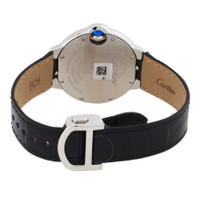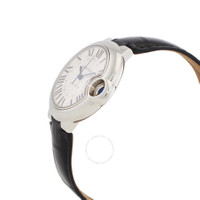 Stainless steel case with a black leather strap. Fixed stainless steel bezel. Silver dial with blued-steel sword-shaped hands and Roman numeral hour markers. Minute markers around an inner ring. Dial Type: Analog. Cartier calibre 076 automatic movement, based upon ETA 2670, containing 25 Jewels, bitting at 28800 vph, and has a power reserve of approximately 38 hours. Scratch resistant sapphire crystal. Screw down crown. Solid case back. Round case shape. Case size: 33 mm. Case thickness: 9.96 mm. Deployment clasp. Water resistant at 30 meters / 100 feet. Functions: hour, minute, second. Additional Info: original box, manual (complete accessories). Ballon Bleu Series. Luxury watch style. Watch label: Swiss Made. Cartier Ballon Bleu Automatic Silver Dial Ladies Watch WSBB0030. INFORMATION Brand: Cartier Series: Ballon Bleu De Cartier Collection Name: Ballon Bleu de Cartier Gender: Womens Model: WSBB0030 Watch Label: Swiss Made Movement: Automatic Engine: Cartier Calibre 076 Power Reserve: 38 hours CASE Case Size: 33 mm Case Thickness: 9.96 mm Case Material: Stainless Steel Case Shape: Round Case Back: Solid BAND Band Material: Leather Band Type: Strap Band Color: Black Clasp: Deployment DIAL Dial Color: Silver Type: Analog Crystal: Scratch Resistant Sapphire Hands: Blued-steel Sword-shaped Dial Markers: Roman Numeral Second Markers: Minute Markers around an inner ring Bezel: Fixed Bezel Color: Silver-tone Bezel Material: Stainless Steel Crown: Screw Down FEATURES Water Resistance: 30 meters / 100 feet Functions: Hour, Minute, Second Watch Features: Stainless Steel, Leather, Analog ADDITIONAL INFO Watch Style: Luxury Warranty: 2 Year Jomashop Warranty Additional Info: Original Box, Manual (Complete Accessories) Jomashop Sku: CRTWSBB0030 Department: Watches Category: Watches