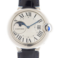 Stainless steel case with a blue alligator band. Stainless steel bezel. Silver-tone dial with blue hands. Dial Type: Analog. Automatic movement. Scratch resistant sapphire crystal. Screw down crown. Solid case back. Round case shape, case size: 37 mm, case thickness: 13 mm. Deployment clasp. Water resistant at 30 meters / 100 feet. Functions: moonphase. Additional Info: original box, international warranty card, manual (complete accessories). Ballon Bleu Series. Luxury watch style. Watch label: Swiss Made. Cartier Ballon Bleu Automatic Silver Dial Men's Watch WSBB0029. CASE Case Size: 37 Case Thickness: 13 mm Case Material: Stainless Steel Case Shape: Round Case Back: Solid BAND Band Material: Alligator Band Type: Strap Band Color: Blue Clasp: Deployment DIAL Dial Color: Silver-tone Type: Analog Crystal: Scratch Resistant Sapphire Hands: Blue Bezel Material: Stainless Steel Crown: Screw Down INFORMATION Brand: Cartier Series: Ballon Bleu De Cartier Collection Name: Ballon Bleu de Cartier Gender: Mens Model: WSBB0029 Watch Label: Swiss Made Movement: Automatic FEATURES Water Resistance: 30 meters / 100 feet Functions: Moonphase Watch Features: Stainless Steel, Analog, Alligator Leather ADDITIONAL INFO Watch Style: Luxury Warranty: 2 Year Jomashop Warranty Additional Info: Original Box, Manual (Complete Accessories) Jomashop Sku: CRTWSBB0029 Department: Watches Category: Watches