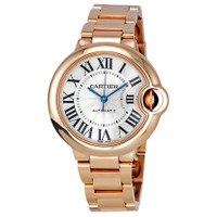 18kt pink gold case with a 18kt pink gold bracelet. Fixed smooth 18kt pink gold bezel. Lacquered silvered opaline flinque dial with blued-steel sword-shaped hands and black Roman numeral hour markers. Minute markers around an inner ring. Dial Type: Analog. Cartier Calibre 076 Automatic movement, based upon ETA 2670, containing 25 Jewels, bitting at 28800 vph, and has a power reserve of approximately 38 hours. Scratch resistant sapphire crystal. 18kt pink gold fluted with blue sapphire cabochon crown. Solid case back. Round case shape, case size: 33 mm, case thickness: 9.96 mm. Hidden fold over clasp. Water resistant at 30 meters / 100 feet. Functions: hour, minute, second. Luxury watch style. Watch label: Swiss Made. Cartier Ballon Bleu de Cartier 18kt Pink Gold 33mm Watch W6920068. GENERAL Color: Blue / Gold / Pink / Silver INFORMATION Brand: Cartier Series: Ballon Bleu De Cartier Collection Name: Ballon Bleu de Cartier Gender: Womens Model: W6920068 Watch Label: Swiss Made Movement: Automatic Engine: Cartier Calibre 076 Power Reserve: 38 hours CASE Case Size: 33 mm Case Thickness: 9.96 mm Case Material: 18kt Pink Gold Case Shape: Round Case Back: Solid BAND Band Material: 18kt Pink Gold Band Type: Bracelet Clasp: Hidden Fold Over DIAL Dial Color: Lacquered silvered opaline flinque Type: Analog Crystal: Scratch Resistant Sapphire Hands: Blued-steel Sword-shaped Dial Markers: Black Roman Numeral Second Markers: Minute Markers around an inner ring Bezel: Fixed Smooth Bezel Material: 18kt Pink Gold Crown: 18kt Pink Gold fluted with Blue Sapphire Cabochon FEATURES Water Resistance: 30 meters / 100 feet Functions: Hour, Minute, Second Watch Features: Gold, Analog ADDITIONAL INFO Watch Style: Luxury Warranty: 2 Year Jomashop Warranty UPC Code: 7612456782374 Jomashop Sku: CRTW6920068 Department: Watches Category: Watches