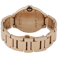 18kt rose gold case with a 18kt rose gold bracelet. Fixed 18kt rose gold bezel set with diamonds. Silver opaline dial with blued-steel sword-shaped hands and Roman numeral hour markers. Minute markers around an inner ring. Dial Type: Analog. Date display at the 3 o'clock position. Cartier calibre 049 automatic movement, based upon ETA 2892-A2, containing 21 Jewels, bitting at 28800 vph, and has a power reserve of approximately 42 hours. Scratch resistant sapphire crystal. Rose gold fluted crown set with a blue sapphire. Solid case back. Round case shape. Case size: 42 mm. Hidden fold over clasp. Water resistant at 30 meters / 100 feet. Functions: date, hour, minute, second. Ballon Bleu De Cartier Series. Luxury watch style. Watch label: Swiss Made. Item Variations: wjbb0029. Cartier Ballon Bleu Rose Gold Men's Watch WE9008Z3. GENERAL Color: Blue / Gold / Rose / Silver CASE Case Size: 42 Case Material: 18kt Rose Gold Case Shape: Round Case Back: Solid BAND Band Material: 18kt Rose Gold Band Type: Bracelet Band Color: Rose Gold-tone Clasp: Hidden Fold Over DIAL Dial Color: Silver Opaline Type: Analog Crystal: Scratch Resistant Sapphire Hands: Blued-steel Sword-shaped Dial Markers: Roman Numeral Second Markers: Minute Markers around an inner ring Bezel: Fixed Bezel Material: 18kt Rose Gold set with Diamonds Crown: Rose Gold Fluted set with Blue Sapphire Cabo INFORMATION Brand: Cartier Series: Ballon Bleu De Cartier Collection Name: Ballon Bleu de Cartier Gender: Mens Model: WE9008Z3 Watch Label: Swiss Made Movement: Automatic Engine: Cartier Calibre 049 Power Reserve: 42 hours FEATURES Water Resistance: 30 meters / 100 feet Calendar: Date display at the 3 o'clock position Functions: Date, Hour, Minute, Second Watch Features: Diamond, Gold, Analog ADDITIONAL INFO Watch Style: Luxury Warranty: 2 Year Jomashop Warranty Jomashop Sku: CRTWE9008Z3 Item Variation: wjbb0029 Department: Watches Category: Watches