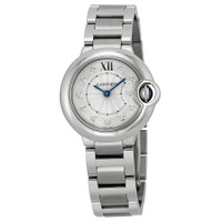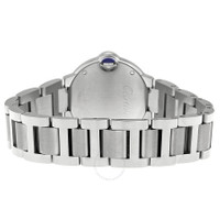 Stainless steel case with a stainless steel bracelet. Fixed stainless steel bezel. Silver dial with blue hands and diamond hour markers. Roman numeral marks the 12 o'clock position. minute markers aroundan inner ring. Dial Type: Analog. Cartier calibre 057 quartz movement. Scratch resistant sapphire crystal. Pull / push crown. Solid case back. Case size: 28 mm. Case thickness: 9.35 mm. Round case shape. Deployment clasp. Water resistant at 30 meters / 100 feet. Functions: hour, minute. Luxury watch style. Watch label: Swiss Made. Cartier Ballon Bleu Silver Diamond Dial Ladies Watch WE902073. INFORMATION Brand: Cartier Series: Ballon Bleu De Cartier Collection Name: Ballon Bleu de Cartier Gender: Womens Model: WE902073 Watch Label: Swiss Made Movement: Quartz Engine: Cartier Calibre 057 CASE Case Size: 28 mm Case Thickness: 9.35 mm Case Material: Stainless Steel Case Shape: Round Case Back: Solid BAND Band Material: Stainless Steel Band Type: Bracelet Band Color: Silver-tone Clasp: Deployment DIAL Dial Color: Silver Type: Analog Crystal: Scratch Resistant Sapphire Hands: Blued-steel Sword-shaped Dial Markers: Diamond Second Markers: Roman Numeral marks the 12 o'clock position. Minute Markers aroundan inner ring Bezel: Fixed Bezel Color: Silver-tone Bezel Material: Stainless Steel Crown: Pull / Push FEATURES Water Resistance: 30 meters / 100 feet Functions: Hour, Minute Watch Features: Diamond, Stainless Steel, Analog ADDITIONAL INFO Watch Style: Luxury Warranty: 2 Year Jomashop Warranty UPC Code: 7613268323601 Jomashop Sku: CRTWE902073 Department: Watches Category: Watches