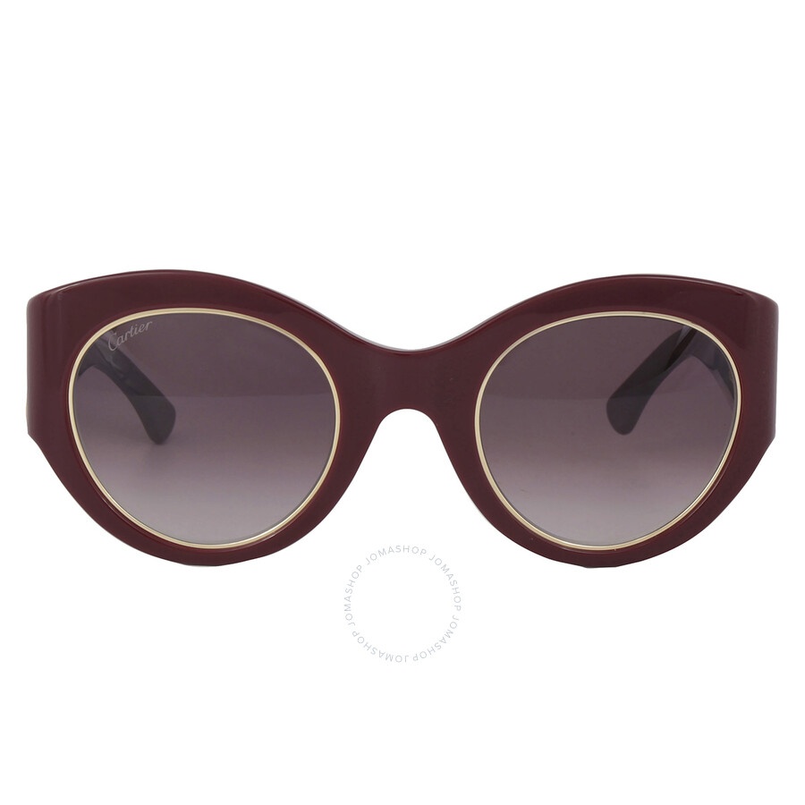 Cartier Sunglasses. Series number: CT0305S. Color code: 003. Shape: Cat Eye. Lens Width: 51 mm. Lens Bridge: 26 mm. Arm Length: 135 mm. 100% UV protection. Frame Material: Acetate. Frame Color: Red. Lenses Type: Burgundy Gradient. Rim Style: Full-Rim. UPC/EAN code: 843023155070. Cartier Burgundy Gradient Cat Eye Ladies Sunglasses CT0305S 003 51. Manufacturer's Packaging Included. Packaging Size And Color May Vary. DETAILS Lens Width (mm): 51 Arm Length (mm): 135 mm Lens Bridge (mm): 26 Series Number: CT0305S Frame Color: Red Color Code: 003 Lens Type: Gradient Lens: Burgundy Gradient UV Protection: 100% UV Protection Rim Style: Full-Rim Frame Shape: Cat Eye Frame Material: Acetate GENERAL Size: 51 mm INFORMATION Brand: Cartier Gender: Womens Model: CT0305S 003 51 ADDITIONAL INFO UPC Code: 843023155070 Jomashop Sku: Z-H9CSR Department: Sunglasses Category: Sunglasses