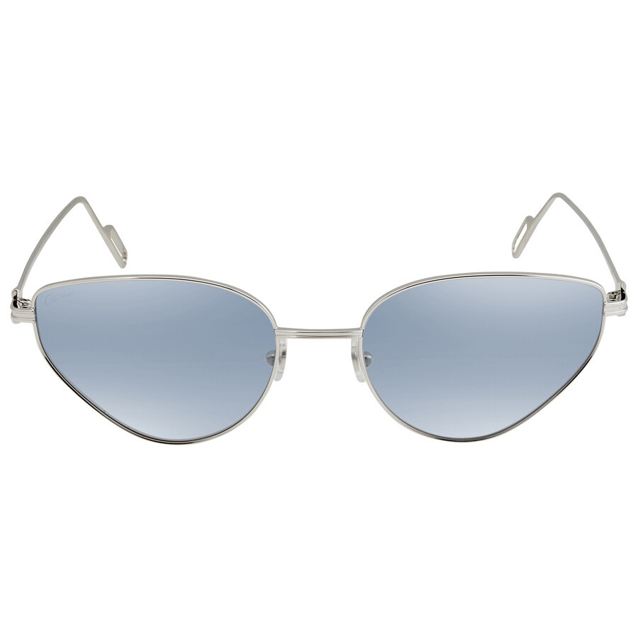 Cartier Sunglasses. Series C de Cartier. Series number: CT0155S. Color code: 006. Shape: Cat Eye. Lens Width: 57 mm. Lens Bridge: 19 mm. Arm Length: 140 mm. 100% UV protection. Non-Polarized. Frame Material: Metal. Frame Color: Silver. Lenses Type: Blue. Rim Style: Full-Rim. UPC/EAN code: 843023139957. Cartier C de Cartier Blue Cat Eye Ladies Sunglasses CT0155S 006 57. Manufacturer's Packaging Included. Packaging Size And Color May Vary. DETAILS Lens Width (mm): 57 Arm Length (mm): 140 mm Lens Bridge (mm): 19 Series Number: CT0155S Frame Color: Silver Color Code: 006 Lens: Blue UV Protection: 100% UV Protection Rim Style: Full-Rim Frame Shape: Cat Eye Frame Material: Not Specified GENERAL Size: 57 mm Collection Name: C de Cartier INFORMATION Brand: Cartier Series: C De Cartier Gender: Womens Model: CT0155S 006 57 ADDITIONAL INFO UPC Code: 843023139957 Jomashop Sku: Z-L2M4Z Department: Sunglasses Category: Sunglasses