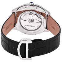 Stainless steel case with a black (alligator) leather strap. Fixed stainless steel bezel. Silvered flinique dial with blued-steel sword-shaped hands and Roman numeral hour markers. Minute markers around an inner ring. Dial Type: Analog. Date display at the 3 o'clock position. Small seconds sub-dial. Cartier calibre 1904-PS MC automatic movement, containing 27 Jewels, bitting at 28800 vph, and has a power reserve of approximately 48 hours. Scratch resistant sapphire crystal. Pull / push set with a blue cabochon crown. Transparent case back. Cushion case shape. Case dimensions: 40 mm x 41 mm. Case thickness: 11.25 mm. Band width: 18 mm. Fold over clasp. Water resistant at 30 meters / 100 feet. Functions: date, hour, minute, second. Drive Series. Luxury watch style. Watch label: Swiss Made. Cartier Drive Automatic Silvered Flinique Dial Men's Watch WSNM0015. CASE Case Size: 40 Case Thickness: 11.25 mm Case Material: Stainless Steel Case Shape: Cushion Case Back: Transparent BAND Band Material: (Alligator) Leather Band Type: Strap Band Color: Black Band Width: 18 mm Clasp: Fold Over DIAL Dial Color: Silvered Flinique Type: Analog Crystal: Scratch Resistant Sapphire Hands: Blued-steel Sword-shaped Dial Markers: Roman Numeral Second Markers: Minute Markers around an inner ring Sub Dials: Small Seconds Bezel: Fixed Bezel Color: Silver-tone Bezel Material: Stainless Steel Crown: Pull / Push set with a Blue Cabochon INFORMATION Brand: Cartier Series: Drive Collection Name: Drive Gender: Mens Model: WSNM0015 Watch Label: Swiss Made Movement: Automatic Engine: Cartier Calibre 1904-PS MC FEATURES Water Resistance: 30 meters / 100 feet Calendar: Date display at the 3 o'clock position Functions: Date, Hour, Minute, Second Watch Features: Stainless Steel, Leather, Analog, Alligator Leather ADDITIONAL INFO Watch Style: Luxury Warranty: 2 Year Jomashop Warranty UPC Code: 7613375113263 Jomashop Sku: CRTWSNM0015 Department: Watches Category: Watches