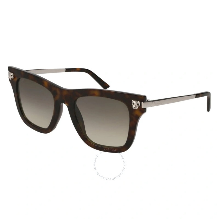 Cartier Sunglasses. Series Panthere de Cartier. Series number: CT0025S. Color code: 002. Shape: Cat Eye. Lens Width: 50 mm. Lens Bridge: 20 mm. Arm Length: 140 mm. 100% UV protection. Non-Polarized. Frame Material: Acetate. Frame Color: Havana/Silver. Lenses Type: Grey. Rim Style: Full-Rim. UPC/EAN code: 843024101664. Cartier Panthere de Cartier Grey Cat Eye Ladies Sunglasses CT0025S 002 50. Manufacturer's Packaging Included. Packaging Size And Color May Vary. DETAILS Lens Width (mm): 50 Arm Length (mm): 140 mm Lens Bridge (mm): 20 Series Number: CT0025S Frame Color: Havana/Silver Color Code: 002 Lens: Grey UV Protection: 100% UV Protection Rim Style: Full-Rim Frame Shape: Cat Eye Frame Material: Acetate GENERAL Size: 50 mm Collection Name: Panthere de Cartier INFORMATION Brand: Cartier Series: Panthere De Cartier Gender: Womens Model: CT0025S 002 50 ADDITIONAL INFO UPC Code: 843024101664 Jomashop Sku: Z-7FG6H Department: Sunglasses