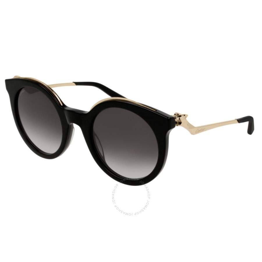 Cartier Sunglasses. Series Panthere de Cartier. Series number: CT0118S. Color code: 001. Shape: Round. Lens Width: 52 mm. Lens Bridge: 24 mm. Arm Length: 140 mm. Frame Material: Acetate;Metal. Frame Color: Black/Gold. Lenses Type: Grey. Rim Style: Full-Rim. UPC/EAN code: 843023106607. Cartier Panthere de Cartier Grey Round Ladies Sunglasses CT0118S 001 52. Manufacturer's Packaging Included. Packaging Size And Color May Vary. DETAILS Lens Width (mm): 52 Arm Length (mm): 140 mm Lens Bridge (mm): 24 Series Number: CT0118S Frame Color: Black/Gold Color Code: 001 Lens: Grey Rim Style: Full-Rim Frame Shape: Round Frame Material: Not Specified GENERAL Size: 52 mm Collection Name: Panthere de Cartier INFORMATION Brand: Cartier Series: Panthere De Cartier Gender: Womens Model: CT0118S 001 52 ADDITIONAL INFO UPC Code: 843023106607 Jomashop Sku: Z-PJPP4 Department: Sunglasses