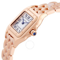 Rose gold-tone 18kt rose gold case with a 18kt rose gold bracelet. Fixed rose gold-tone 18kt rose gold bezel. White dial with blue hands and Roman numeral hour markers. Dial Type: Analog. Quartz movement. Scratch resistant sapphire crystal. Pull / push crown. Solid case back. Rectangle case shape, case size: 23 mm x 30 mm, case thickness: 6.05 mm. Water resistant at 30 meters / 100 feet. Functions: hour, minute. Panthere De Cartier Series. Watch label: Swiss Made. Cartier Panthere de Cartier Quartz White Dial Ladies Watch WGPN0049. CASE Case Size: 23 Case Thickness: 6.05 mm Case Material: 18kt Rose Gold Case Shape: Rectangle Case Back: Solid BAND Band Material: 18kt Rose Gold Band Type: Bracelet DIAL Dial Color: White Type: Analog Crystal: Scratch Resistant Sapphire Hands: Blue Dial Markers: Roman Numeral Bezel: Fixed Bezel Color: Rose Gold-tone Bezel Material: 18kt Rose Gold Crown: Pull / Push INFORMATION Brand: Cartier Series: Panthere Collection Name: Panthere de Cartier Gender: Womens Model: WGPN0049 Watch Label: Swiss Made Movement: Quartz FEATURES Water Resistance: 30 meters / 100 feet Functions: Hour, Minute Watch Features: Gold, Analog ADDITIONAL INFO Warranty: 2 Year Jomashop Warranty Jomashop Sku: CRTWGPN0049 Department: Watches Category: Watches