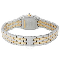 Stainless steel case with a stainless steel bracelet with 18kt yellow gold links. Fixed 18kt yellow gold bezel. Silver dial with blued-steel sword-shaped hands and Roman numeral hour markers. Minute markers around an inner ring. Dial Type: Analog. Quartz movement. Scratch resistant sapphire crystal. Pull / push crown. Solid case back. Square case shape. Case dimensions: 22 mm x 30 mm. Case thickness: 6 mm. Hidden deployment clasp. Water resistant at 30 meters / 100 feet. Functions: hour, minute. Panthere De Cartier Series. Luxury watch style. Watch label: Swiss Made. Cartier Panthere de Cartier Silver Dial Ladies Watch W2PN0006. INFORMATION Brand: Cartier Series: Panthere De Cartier Collection Name: Panthere de Cartier Gender: Womens Model: W2PN0006 Watch Label: Swiss Made Movement: Quartz CASE Case Size: 22 mm x 30 mm Case Thickness: 6 mm Case Material: Stainless Steel Case Shape: Square Case Back: Solid BAND Band Material: Stainless Steel and 18kt Yellow Gold Links Band Type: Bracelet Band Color: Two-Tone (Silver-tone/18kt Yellow Gold) Clasp: Hidden Deployment DIAL Dial Color: Silver Type: Analog Crystal: Scratch Resistant Sapphire Hands: Blued-steel Sword-shaped Dial Markers: Roman Numeral Second Markers: Minute Markers around an inner ring Bezel: Fixed Bezel Material: 18kt Yellow Gold Crown: Pull / Push FEATURES Water Resistance: 30 meters / 100 feet Functions: Hour, Minute Watch Features: Stainless Steel, Gold, Analog ADDITIONAL INFO Watch Style: Luxury Warranty: 2 Year Jomashop Warranty UPC Code: 7613268812655 Jomashop Sku: CRTW2PN0006 Department: Watches Category: Watches
