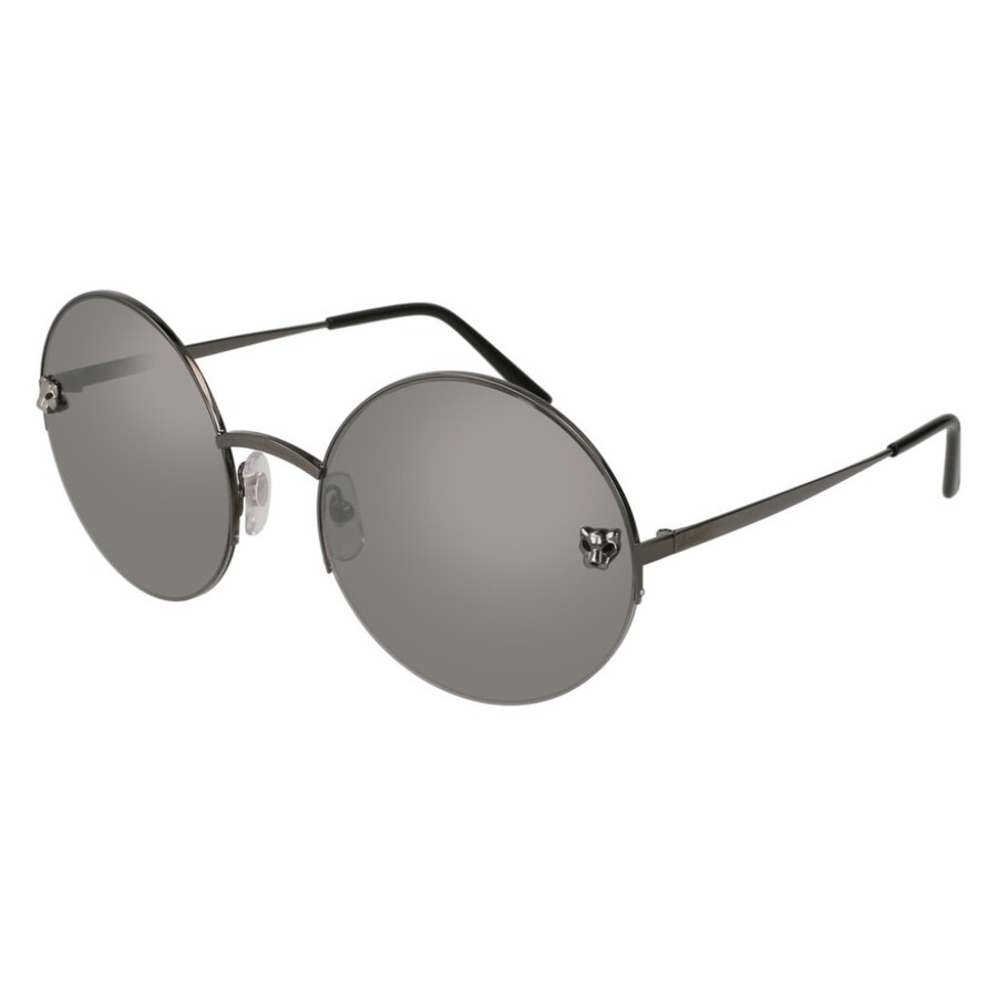 Cartier Sunglasses. Series Panthere de Cartier. Series number: CT0022S. Color code: 001. Shape: Round. Lens Width: 58 mm. Lens Bridge: 21 mm. Arm Length: 140 mm. 100% UV protection. Non-Polarized. Frame Material: Metal. Frame Color: Grey. Lenses Type: Silver. Rim Style: Semi-Rimless. UPC/EAN code: 843023101848. Cartier Panthere de Cartier Silver Round Ladies Sunglasses CT0022S 001 58. Manufacturer's Packaging Included. Packaging Size And Color May Vary. DETAILS Lens Width (mm): 58 Arm Length (mm): 140 mm Lens Bridge (mm): 21 Series Number: CT0022S Frame Color: Grey Color Code: 001 Lens: Silver UV Protection: 100% UV Protection Rim Style: Semi-Rimless Frame Shape: Round Frame Material: Not Specified GENERAL Size: 58 mm Collection Name: Panthere de Cartier INFORMATION Brand: Cartier Series: Panthere De Cartier Gender: Womens Model: CT0022S 001 58 ADDITIONAL INFO UPC Code: 843023101848 Jomashop Sku: Z-AKH7N Department: Sunglasses