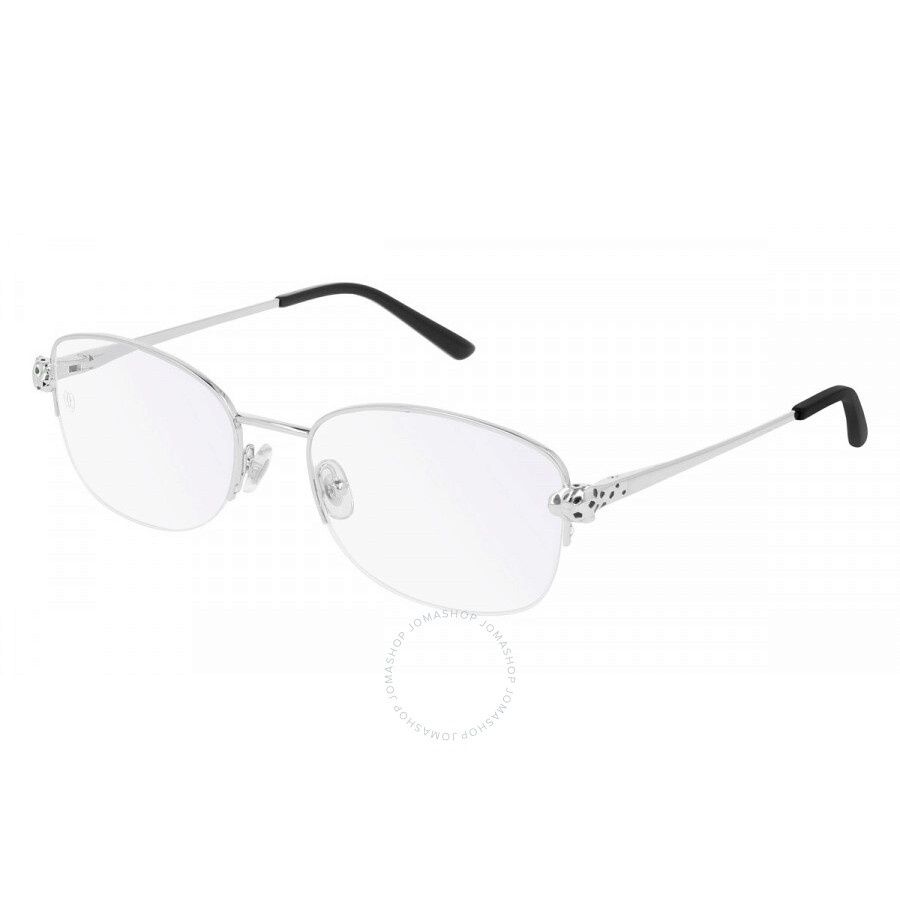 Cartier Eyeglasses. Series Pathere De Cartier. Series number: CT0235O. Color code: 002. Shape: Oval. Lens Width: 54 mm. Lens Bridge: 19 mm. Arm Length: 135 mm. Frame Material: Metal. Frame Color: Silver. Lenses Type: Demo. Rim Style: Semi-Rimless. UPC/EAN code: 843023144869. Cartier Pathere De Cartier Demo Oval Ladies Eyeglasses CT0235O 002 54. Manufacturer's Packaging Included. Packaging Size And Color May Vary. GENERAL Frame Color: Silver Collection Name: Pathere De Cartier INFORMATION Brand: Cartier Series: Pathere De Cartier Gender: Womens Model: CT0235O 002 54 DETAILS Series Number: CT0235O Color Code: 002 Lens: Demo Size: 54 mm Lens Width (mm): 54 Lens Bridge (mm): 19 Arm Length (mm): 135 mm Rim Style: Semi-Rimless Frame Shape: Oval Frame Material: Not Specified ADDITIONAL INFO UPC Code: 843023144869 Jomashop Sku: Z-H66RR Department: Eyeglasses Category: Eyeglass Frames