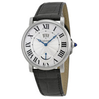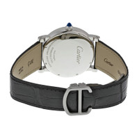 Silver-tone stainless steel case with a black alligator leather strap. Fixed silver-tone stainless steel bezel. Silver dial with blued-steel apple-shaped hands and black Roman numeral hour markers. Minute markers around an inner ring. Dial Type: Analog. Date display below the 12 o'clock position. Power reserve subdials. Cartier Calibre 9348 MC automatic movement with a 192-hour power reserve. Scratch resistant sapphire crystal. Pull / push crown. Solid case back. Round case shape, case size: 40 mm, case thickness: 8.94 mm. Band width: 18 mm. Deployment clasp. Water resistant at 30 meters / 100 feet. Functions: date, hour, minute, second. Luxury watch style. Watch label: Swiss Made. Cartier Rotonde Automatic Silver Dial Men's Watch W1556369. GENERAL Box Type: Original Box CASE Case Thickness: 8.94 mm Case Material: Stainless Steel Case Shape: Round Case Back: Solid BAND Band Material: Alligator Leather Band Type: Strap Band Color: Black Band Width: 18 mm Clasp: Deployment DIAL Dial Color: Silver Type: Analog Crystal: Scratch Resistant Sapphire Hands: Blued-steel Apple-shaped Dial Markers: Black Roman Numeral Second Markers: Minute Markers around an inner ring Sub Dials: One - Power Reserve Indicator Bezel: Fixed Bezel Color: Silver-tone Bezel Material: Stainless Steel Crown: Pull / Push INFORMATION Brand: Cartier Series: Ronde Collection Name: Rotonde de Cartier Gender: Mens Model: W1556369 Watch Label: Swiss Made Movement: Automatic Engine: Cartier Calibre 9348 MC Power Reserve: 192 hours FEATURES Water Resistance: 30 meters / 100 feet Calendar: Date display below the 12 o'clock position Functions: Date, Hour, Minute, Second Watch Features: Power Reserve Indicator, Alligator Leather, Analog, Leather, Stainless Steel ADDITIONAL INFO Watch Style: Luxury Warranty: 2 Year Jomashop Warranty UPC Code: 7613268364512 Jomashop Sku: CRTW1556369 Department: Watches Category: Watches
