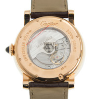 18 kt rose gold case with a brown alligator leather strap. Fixed bezel. Silver guilloche dial with blue hands and Roman numeral hour markers. Minute markers around the outer rim. Dial Type: Analog. Date display appears at the 12 o'clock position. Day of the week around an inner ring. Month around outer rim. Automatic movement with 48 hour power reserve. Caliber 9908 mc engine. Scratch resistant sapphire crystal. Beaded crown set with cabuchon sapphire. Skeleton case back. Case diameter: 45 mm. Case thickness: 14.05 mm. Round case shape. Deployment clasp with push button. Water resistant at 30 meters / 100 feet. Functions: month, date, day, hour, minute, second. Luxury watch style. Watch label: Swiss Made. Cartier Rotonde de Cartier Annual Calendar Complication 18 kt Rose Gold Men's Watch W1580001. GENERAL Color: Blue / Brown / Gold / Rose / Silver / Skeleton CASE Case Size: 45 Case Thickness: 14.05 mm Case Material: 18kt Rose Gold Case Shape: Round Case Back: Skeleton BAND Band Material: Alligator Leather Band Type: Strap Band Color: Brown Clasp: Deployment with Push Button Release DIAL Dial Color: Silver guilloche Type: Analog Crystal: Scratch Resistant Sapphire Hands: Blued-steel Sword-shaped Dial Markers: Roman Numeral Second Markers: Minute Markers around the outer rim Bezel: Fixed Bezel Material: 18kt Rose Gold Crown: Beaded crown set with cabuchon sapphire INFORMATION Brand: Cartier Series: Rotonde De Cartier Collection Name: Rotonde de Cartier Gender: Mens Model: W1580001 Watch Label: Swiss Made Movement: Automatic Engine: Cartier Calibre 9908 MC Power Reserve: 48 hours FEATURES Water Resistance: 30 meters / 100 feet Calendar: Date display at the 12 o'clock position. Day of the week around an inner ring. Month around outer rim Functions: Month, Date, Day, Hour, Minute, Second, Annual Calendar Watch Features: Alligator Leather, Analog, Annual Calendar, Month, Gold, Leather ADDITIONAL INFO Watch Style: Luxury Warranty: 2 Year Jomashop Warranty Jomashop Sku: CRTW1580001 Department: Watches Category: Watches