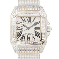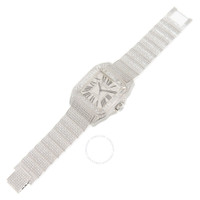 Diamond set 18kt white gold case and bracelet. Fixed bezel with diamond set 18kt white gold. White dial with blued-steel sword-shaped hands and Roman numeral hour markers. Minute scale around the inner rim. Dial Type: Analog. Automatic movement. Scratch resistant sapphire crystal. Screw down crown. Solid case back. Square case shape, case size: 41 mm. Fold over clasp with a safety release. Functions: hour, minute, second. Additional Info: original box, international warranty card, manual (complete accessories). Santos Series. Luxury watch style. Watch label: Swiss Made. Cartier Santos Automatic Diamond White Dial Men's Watch W20073X8-100XL. CASE Case Size: 41 Case Material: Diamond Set 18kt White Gold Case Shape: Square Case Back: Solid BAND Band Material: Diamond Set 18kt White Gold Band Type: Bracelet Band Color: Silver-tone Clasp: Fold Over with Safety Release DIAL Dial Color: White Type: Analog Crystal: Scratch Resistant Sapphire Hands: Blued-steel Sword-shaped Dial Markers: Roman Numeral Second Markers: Minute Scale around the inner rim Bezel: Fixed Bezel Material: Diamond Set 18kt White Gold Crown: Screw Down INFORMATION Brand: Cartier Series: Santos Collection Name: Santos Gender: Mens Model: W20073X8-100XL Watch Label: Swiss Made Movement: Automatic FEATURES Water Resistance: 100 meters / 330 feet Functions: Hour, Minute, Second Watch Features: Diamond, Gold, Analog ADDITIONAL INFO Watch Style: Luxury Warranty: 2 Year Jomashop Warranty Additional Info: Original Box, International Warranty Card, Manual (Complete Accessories) Jomashop Sku: CRTW20073X8100XL Department: Watches Category: Watches