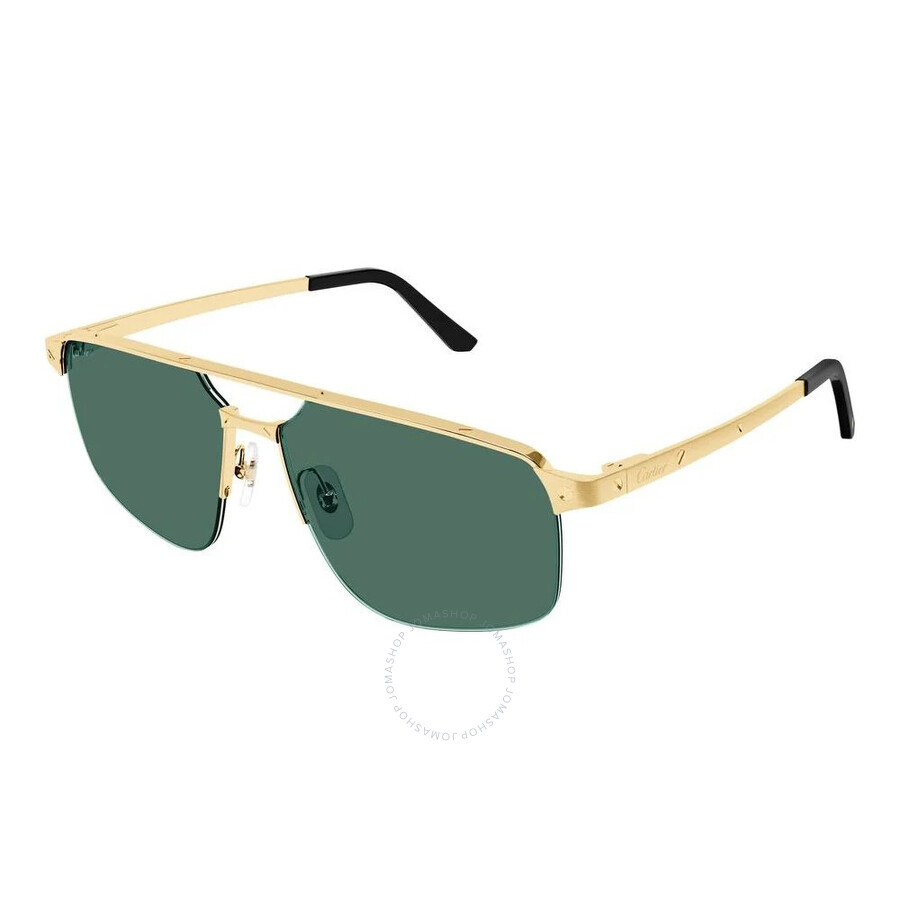 Cartier Sunglasses. Series Santos de Cartier. Series number: CT0385S. Color code: 002. Shape: Navigator. Lens Width: 60 mm. Lens Bridge: 15 mm. Arm Length: 140 mm. 100% UV protection. Non-Polarized. Frame Material: Metal. Frame Color: Gold. Lenses Type: Green. Rim Style: Semi-Rimless. UPC/EAN code: 843023169879. Cartier Santos de Cartier Green Navigator Men's Sunglasses CT0385S 002 60. Manufacturer's Packaging Included. Packaging Size And Color May Vary. DETAILS Lens Width (mm): 60 Arm Length (mm): 140 mm Lens Bridge (mm): 15 Series Number: CT0385S Frame Color: Gold Color Code: 002 Lens: Green UV Protection: 100% UV Protection Rim Style: Semi-Rimless Frame Shape: Navigator Frame Material: Not Specified GENERAL Size: 60 mm Collection Name: Santos de Cartier INFORMATION Brand: Cartier Series: Santos De Cartier Gender: Mens Model: CT0385S 002 60 ADDITIONAL INFO UPC Code: 843023169879 Jomashop Sku: Z-RGJSK Department: Sunglasses