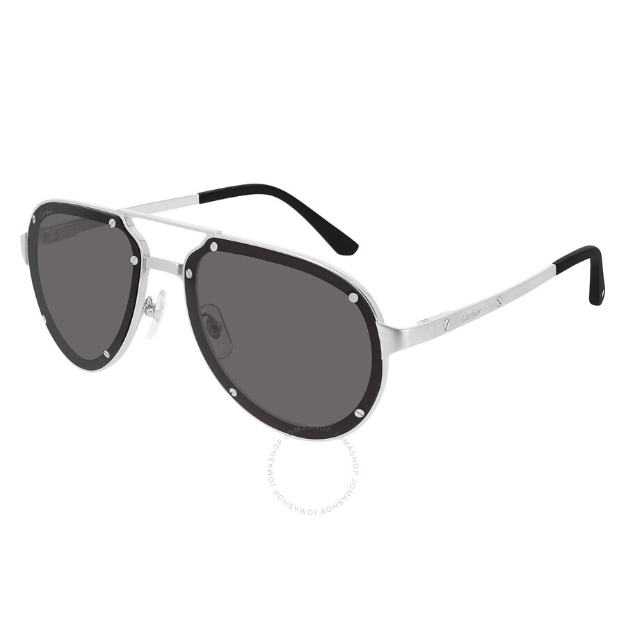 Cartier Sunglasses. Series Santos de Cartier. Series number: CT0195S. Color code: 001. Shape: Pilot. Lens Width: 60 mm. Lens Bridge: 17 mm. Arm Length: 140 mm. 100% UV protection. Non-Polarized. Frame Material: Titanium. Frame Color: Silver. Lenses Type: Grey. Rim Style: Full-Rim. UPC/EAN code: 843023139476. Cartier Santos de Cartier Grey Pilot Men's Titanium Sunglasses CT0195S 001 60. Manufacturer's Packaging Included. Packaging Size And Color May Vary. DETAILS Lens Width (mm): 60 Arm Length (mm): 140 mm Lens Bridge (mm): 17 Series Number: CT0195S Frame Color: Silver Color Code: 001 Lens: Grey UV Protection: 100% UV Protection Rim Style: Full-Rim Frame Shape: Pilot Frame Material: Titanium GENERAL Size: 60 mm Collection Name: Santos de Cartier INFORMATION Brand: Cartier Series: Santos De Cartier Gender: Mens Model: CT0195S 001 60 ADDITIONAL INFO UPC Code: 843023139476 Jomashop Sku: Z-2PXQ7 Department: Sunglasses