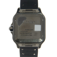 Black ADLC stainless steel case with a black rubber strap. Fixed black ADLC bezel. Black dial with luminous black hands and Roman numeral hour markers. Minute markers around an inner ring. Dial Type: Analog. Luminescent hands. Date display at the 6 o'clock position. Automatic movement. Scratch resistant sapphire crystal. Solid case back. Square case shape. Case size: 40 mm. Case thickness: 9.38 mm. Deployment with push button release clasp. Water resistant at 100 meters / 330 feet. Functions: date, hour, minute, second. Santos Series. Casual watch style. Watch label: Swiss Made. Cartier Santos Automatic Black Dial Black Rubber Men's Watch WSSA0039. INFORMATION Brand: Cartier Series: Santos Collection Name: Santos Gender: Mens Model: WSSA0039 Watch Label: Swiss Made Movement: Automatic CASE Case Size: 40 mm Case Thickness: 9.38 mm Case Material: Stainless Steel Case Shape: Square Case Back: Solid BAND Band Material: Rubber Band Type: Strap Band Color: Black Clasp: Deployment with Push Button Release DIAL Dial Color: Black Type: Analog Crystal: Scratch Resistant Sapphire Hands: Luminous Black Dial Markers: Roman Numeral Second Markers: Minute Markers around an inner ring Luminiscence: Hands Bezel: Fixed Bezel Color: Black ADLC Bezel Material: Stainless Steel FEATURES Water Resistance: 100 meters / 330 feet Calendar: Date display at the 6 o'clock position Functions: Date, Hour, Minute, Second Watch Features: Stainless Steel, Rubber, Analog ADDITIONAL INFO Watch Style: Casual Warranty: 2 Year Jomashop Warranty UPC Code: 7613375365167 Jomashop Sku: CRTWSSA0039 Department: Watches Category: Watches