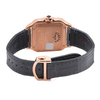 18kt rose gold case with a grey (alligator) leather strap. Fixed 18kt rose gold bezel. Silvered opaline dial with blued-steel sword-shaped hands and black Roman numeral hour markers. Minute markers around the inner ring. Dial Type: Analog. Cartier calibre 1847 MC automatic movement, containing 23 Jewels, bitting at 28800 vph, and has a power reserve of approximately 42 hours. Scratch resistant sapphire crystal. Solid case back. Square case shape. Case size: 35.1 mm. Case thickness: 8.83 mm. Push button clasp. Water resistant at 100 meters / 330 feet. Functions: hour, minute, second. Santos Series. Luxury watch style. Watch label: Swiss Made. Cartier Santos Silvered Opaline Dial Automatic Ladies Watch WGSA0028. INFORMATION Brand: Cartier Series: Santos Collection Name: Santos Gender: Womens Model: WGSA0028 Watch Label: Swiss Made Movement: Automatic Engine: Cartier Calibre 1847 MC Power Reserve: 42 hours CASE Case Size: 35.1 mm Case Thickness: 8.83 mm Case Material: 18kt Rose Gold Case Shape: Square Case Back: Solid BAND Band Material: (Alligator) Leather Band Type: Strap Band Color: grey Clasp: Push Button DIAL Dial Color: Silvered Opaline Type: Analog Crystal: Scratch Resistant Sapphire Hands: Blued-steel Sword-shaped Dial Markers: Black Roman Numeral Second Markers: Minute Markers around an inner ring Bezel: Fixed Bezel Material: 18kt Rose Gold FEATURES Water Resistance: 100 meters / 330 feet Functions: Hour, Minute, Second Watch Features: Leather, Gold, Analog, Alligator Leather ADDITIONAL INFO Watch Style: Luxury Warranty: 2 Year Jomashop Warranty UPC Code: 7613375234883 Additional Info: Interchangeable Blue Leather Strap Jomashop Sku: CRTWGSA0028 Department: Watches Category: Watches