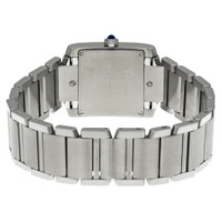 Stainless steel case with a stainless steel bracelet. Fixed stainless steel bezel. Silver grained dial with blue hands and Roman numeral hour markers. Minute markers around the inner ring. Dial Type: Analog. Cartier calibre 157 quartz movement. Scratch resistant sapphire crystal. Pull / push crown. Solid case back. Square case shape. Case dimensions: 30.4 mm x 25.05 mm. Case thickness: 6.7 mm. Triple fold over clasp. Water resistant at 30 meters / 100 feet. Functions: hour, minute. Luxury watch style. Watch label: Swiss Made. Cartier Tank Francaise Silver Dial Ladies Watch WSTA0005. INFORMATION Brand: Cartier Series: Tank Francaise Collection Name: Tank Francaise Gender: Womens Model: WSTA0005 Watch Label: Swiss Made Movement: Quartz Engine: Cartier Calibre 157 CASE Case Size: 30.4 mm x 25.05 mm Case Thickness: 6.7 mm Case Material: Stainless Steel Case Shape: Square Case Back: Solid BAND Band Material: Stainless Steel Band Type: Bracelet Band Color: Silver-tone Clasp: Triple Fold Over DIAL Dial Color: Silver Grained Type: Analog Crystal: Scratch Resistant Sapphire Hands: Blued-steel Sword-shaped Dial Markers: Roman Numeral Second Markers: Minute Markers around the inner ring Bezel: Fixed Bezel Color: Silver-tone Bezel Material: Stainless Steel Crown: Pull / Push FEATURES Water Resistance: 30 meters / 100 feet Functions: Hour, Minute Watch Features: Stainless Steel, Analog ADDITIONAL INFO Watch Style: Luxury Warranty: 2 Year Jomashop Warranty UPC Code: 7613268375822 Jomashop Sku: CRTWSTA0005 Department: Watches Category: Watches