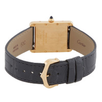 18kt yellow gold case with a grey (alligator) leather strap. Fixed 18kt yellow gold bezel. Silver dial with blued-steel sword-shaped hands and Roman numeral hour markers. Minute markers around an inner ring. Dial Type: Analog. Quartz movement. Scratch resistant sapphire crystal. Pull / push crown set with a blue cabochon. Rectangle case shape. Case dimensions: 33.7 mm x 25.5 mm. Case thickness: 6.3 mm. Tang clasp. Water resistant at 30 meters / 100 feet. Functions: hour, minute. Tank Series. Casual watch style. Watch label: Swiss Made. Cartier Tank Quartz Silver Dial Men's Watch WGTA0067. CASE Case Size: 33 Case Thickness: 6.3 mm Case Material: 18kt Yellow Gold Case Shape: Rectangle BAND Band Material: (Alligator) Leather Band Type: Strap Band Color: Grey Clasp: Tang DIAL Dial Color: Silver Type: Analog Crystal: Scratch Resistant Sapphire Hands: Blued-steel Sword-shaped Dial Markers: Roman Numeral Second Markers: Minute Markers around an inner ring Bezel: Fixed Bezel Color: Yellow Gold-tone Bezel Material: 18kt Yellow Gold Crown: Pull / Push set with a Blue Cabochon INFORMATION Brand: Cartier Series: Tank Collection Name: Tank Gender: Mens Model: WGTA0067 Watch Label: Swiss Made Movement: Quartz FEATURES Water Resistance: 30 meters / 100 feet Functions: Hour, Minute Watch Features: Leather, Gold, Analog, Alligator Leather ADDITIONAL INFO Watch Style: Casual Warranty: 2 Year Jomashop Warranty Jomashop Sku: CRTWGTA0067 Department: Watches Category: Watches